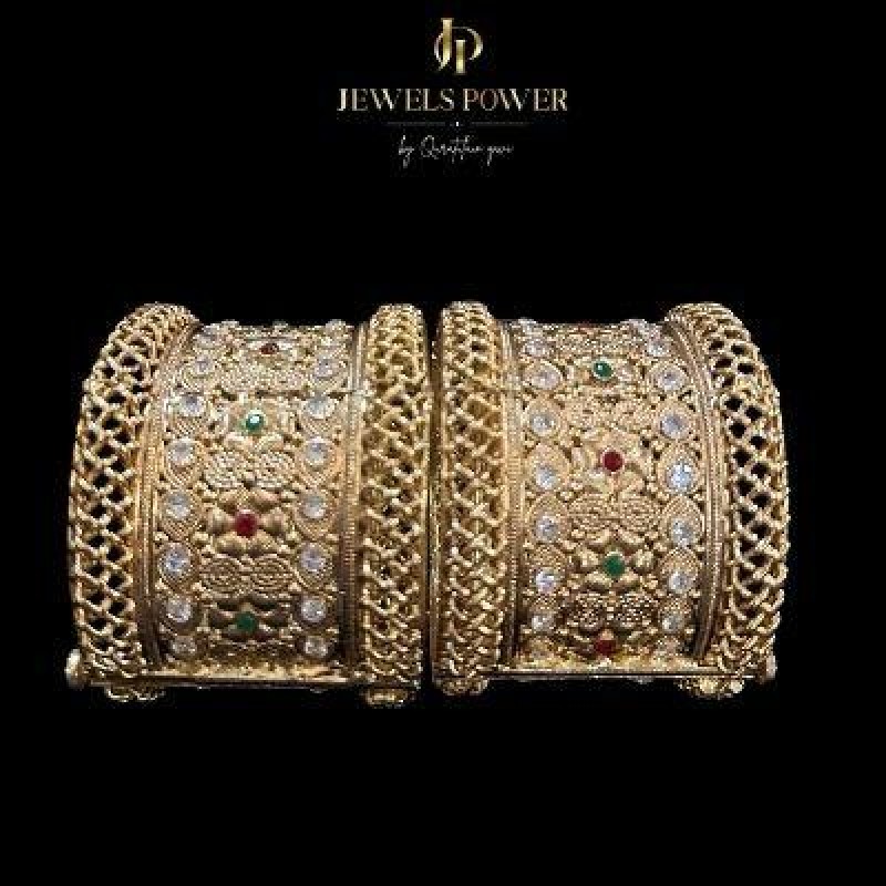 Sunehra is a pair of premium openable Jarao Kangans, crafted on a high-quality base with intricate cut work and finished in rich 24-carat gold plating. A timeless statement, perfect for bridal wear and grand wedding celebrations.