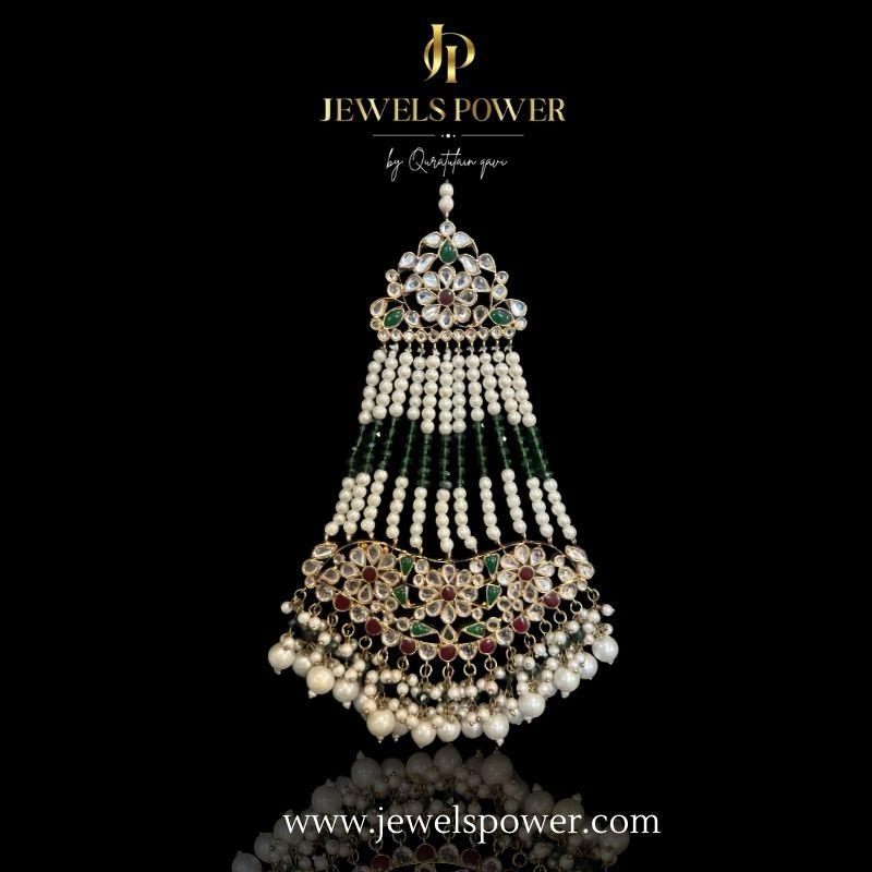 Jana is a beautifully crafted Kundan Jarao jhomer, finished with radiant 24-carat gold plating. Delicately embellished with pearl detailing, this piece adds a soft regal charm to traditional bridal looks. Designed to complement classic and contemporary ensembles, Jana reflects timeless grace and refined craftsmanship