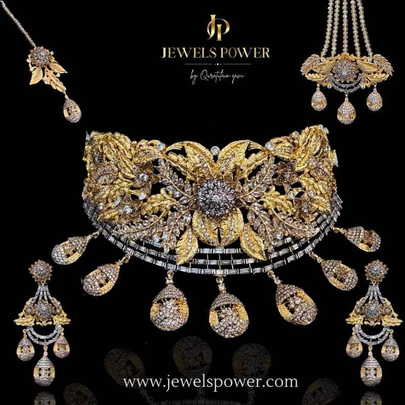 Tejori is an exquisitely handcrafted bridal Jarao jewelry set, finished with rich 24-carat gold plating. Adorned with all Jarao zircons, this masterpiece features a high quality antique texture that reflects timeless royal elegance. Designed for brides who cherish heritage craftsmanship with a luxurious finish, Tejori is a statement of grace, tradition, and everlasting beauty.