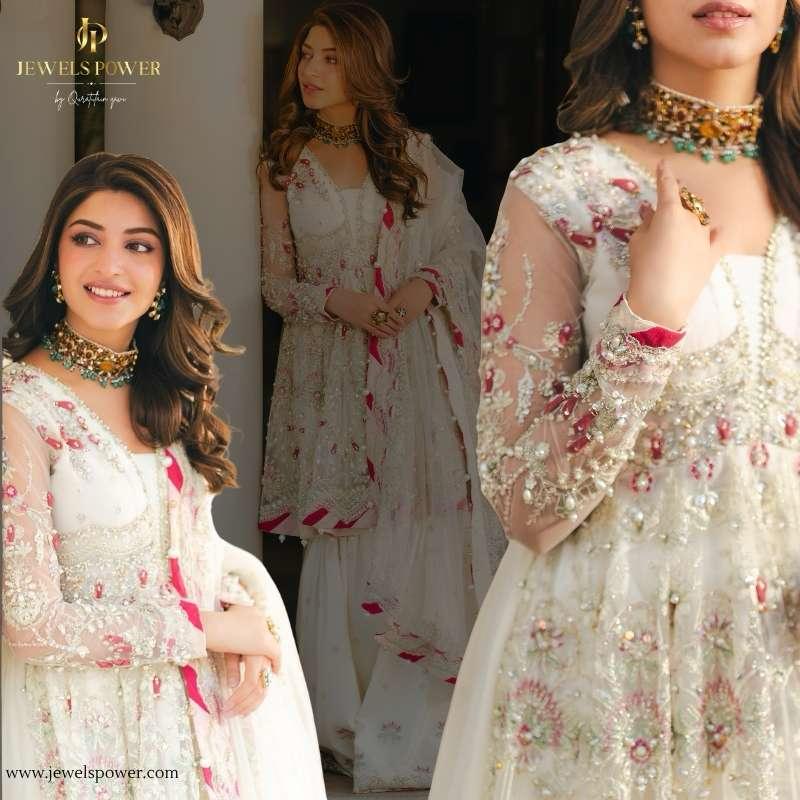 Kundan polki jarao Antique gold choker, paired with statment studs.