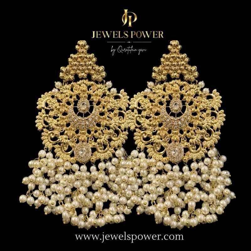 Exquisitely hand crafted cut work jarao Earrings,finished with 24 carat gold plating ,end with beautiful pearls hangings.