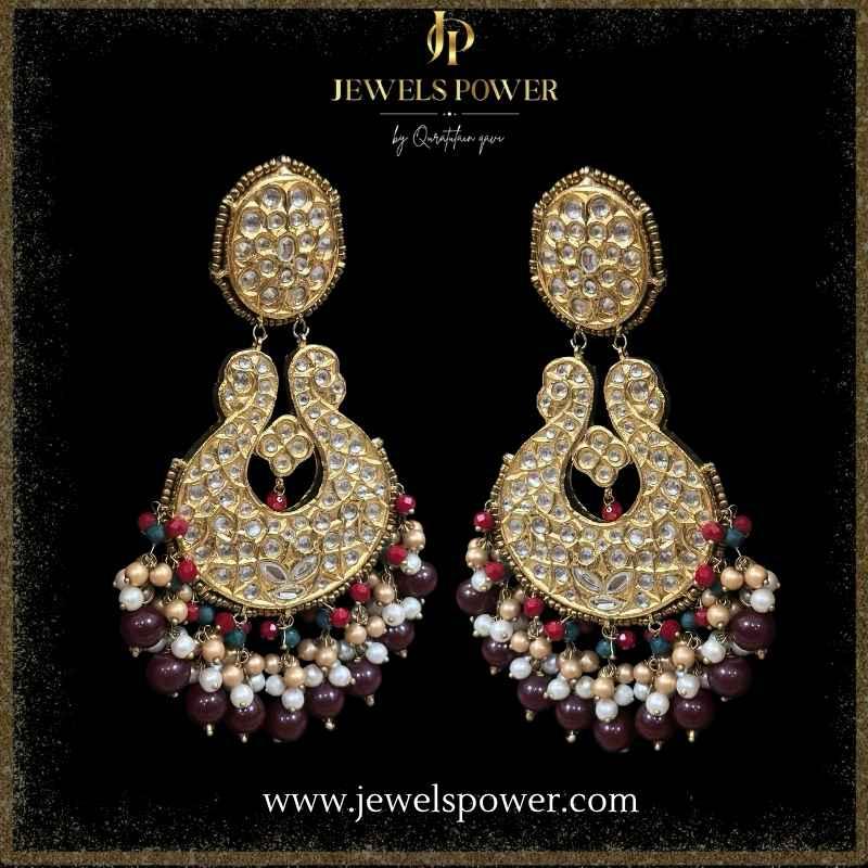 Premium quality Kundan statement chand balas, beautifully handcrafted and embellished with multi-coloured pearls ,a perfect blend of tradition and elegance.